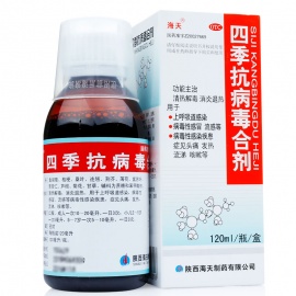 【批准文号】国药准字Z20027669请仔细阅读(海天 四季抗病毒合剂 120ml/瓶)的作用说明,并在药师指导下购买和使用。【药品名称】 通用名称:四季抗病毒合剂 汉语拼音:Siji Kangbingdu Heji【成份】鱼腥草、桔梗、桑叶、连翘、荆芥、薄荷、紫苏叶、苦杏仁、芦